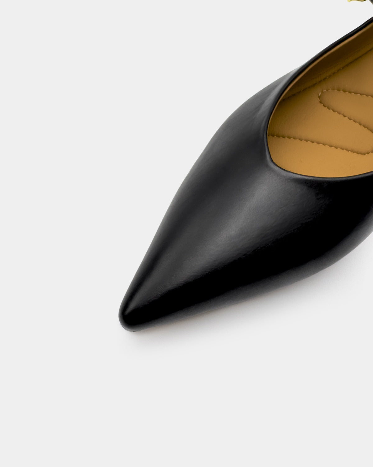 From the office to after-hours, these classic black Mary Jane flats deliver the refined structure of tailored shoes with the comfort of premium flats. The strap ensures a secure fit, while the sleek calf leather upper and polished pointed toe complement tailored trousers, midi-skirts or dresses with ease. Lightweight yet supportive, they’re designed for women who demand both style and all-day wearability.